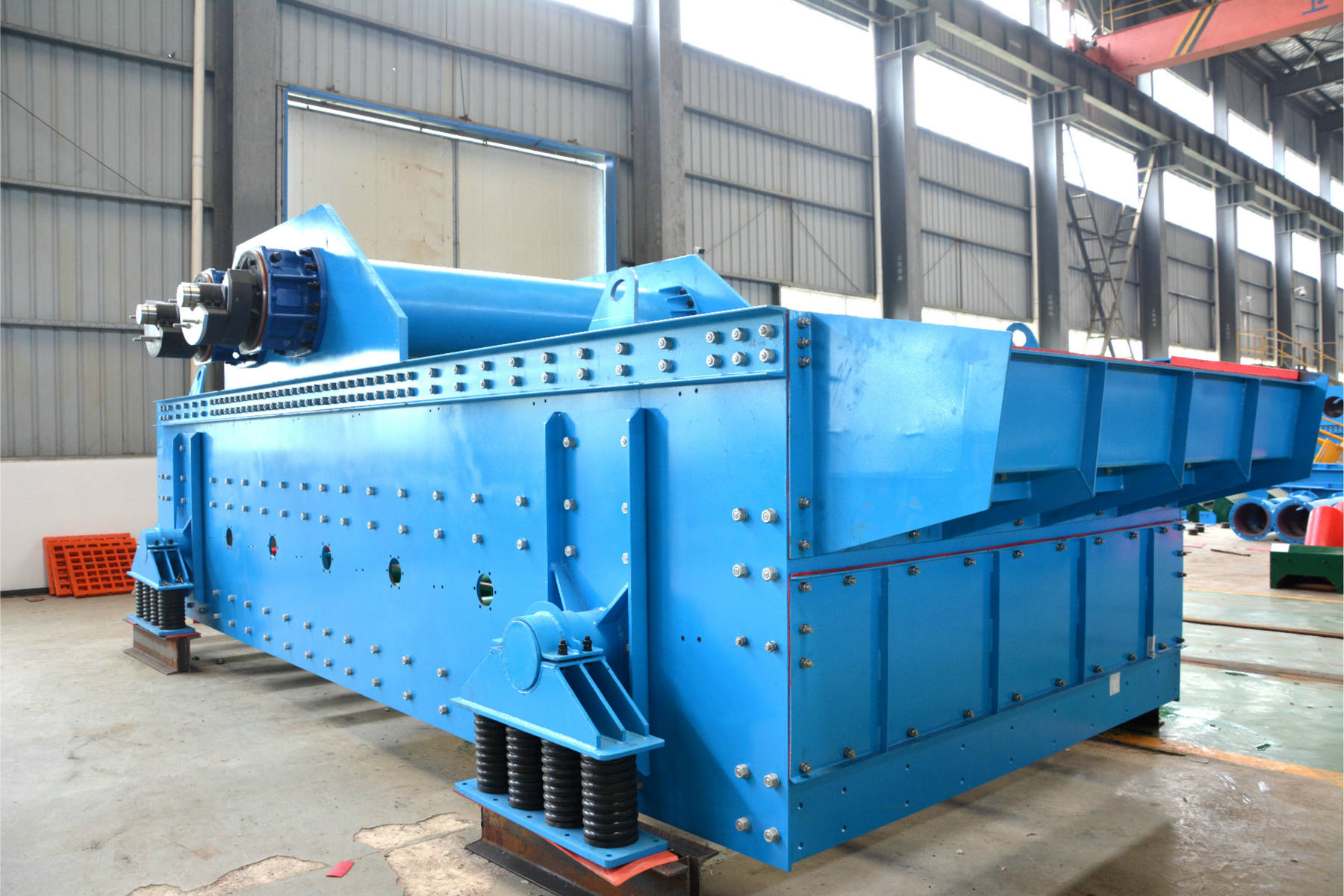 重型直線振動(dòng)篩是我公司自主開發(fā)的直線振動(dòng)篩,該篩機(jī)是在HGZS單層篩和重疊式高頻振動(dòng)篩的基礎(chǔ)上,結(jié)合現(xiàn)場(chǎng)使用經(jīng)驗(yàn)和市場(chǎng)需求,對(duì)HGZS型單層高頻振動(dòng)篩進(jìn)行的進(jìn)一步的改進(jìn)和優(yōu)化,配合雙振動(dòng)器產(chǎn)生的直線運(yùn)動(dòng),使振動(dòng)軌跡更加合理。